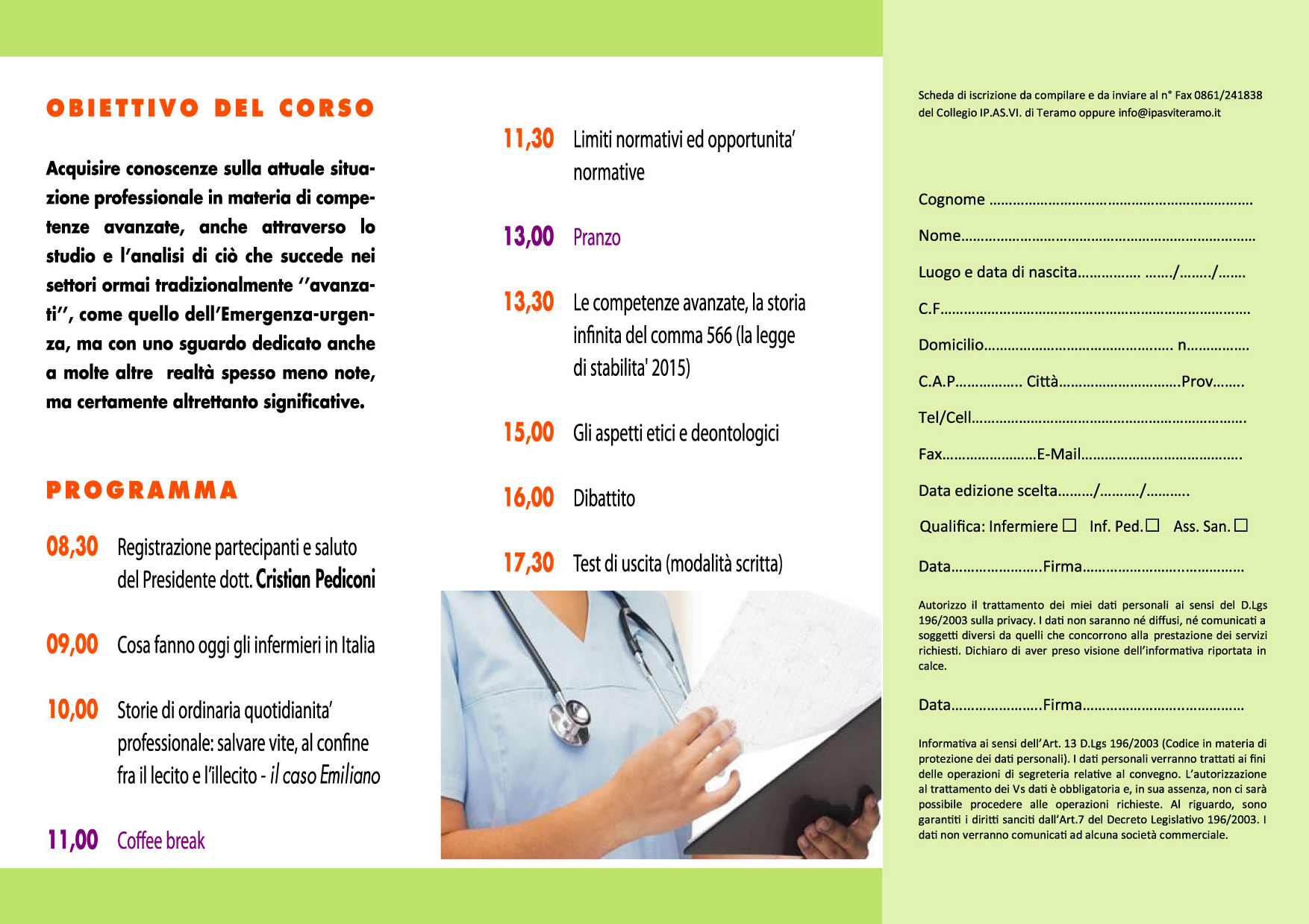 L'obiettivo del corso quello di acquisire conoscenze dulla attuale situazione professionale in materia di competenze avanzate, anche attraverso lo studio e l'analisi di ciò che succede nei settori ormai tradizionalemnte "avanzati", come quello dell'emergenza-urgenza, ma con uno sguardo dedicato anche a molte altre realtà spesso meno note, ma certamente altrettanto significative".