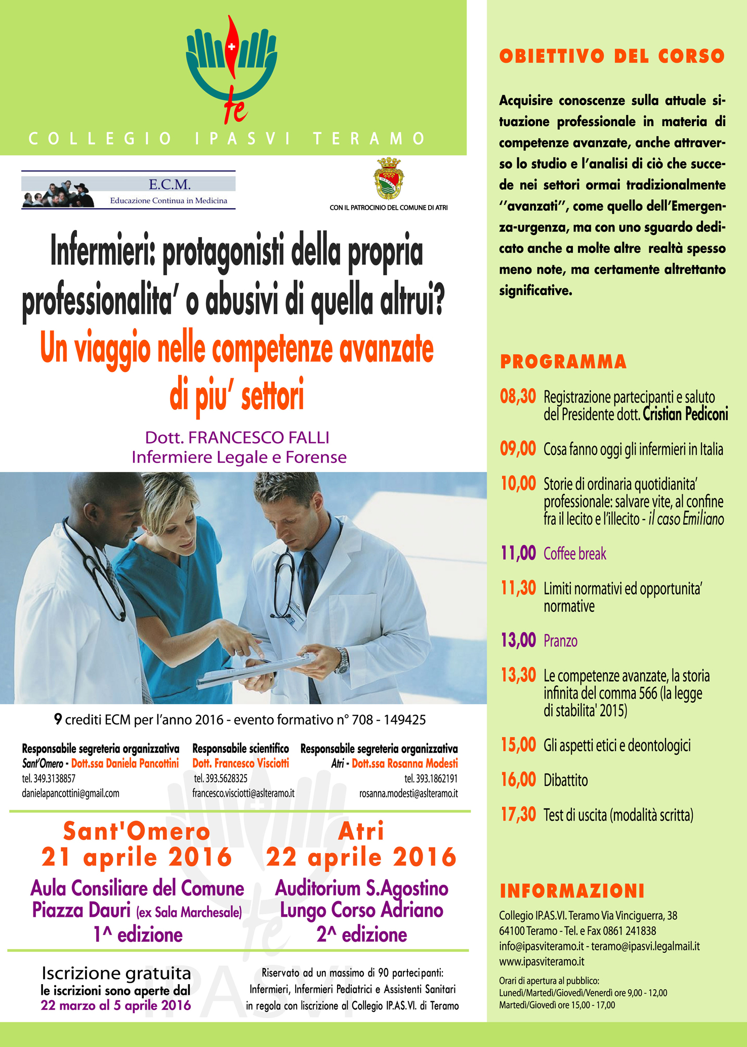 Relatore Dott. Francesco Falli, appuntamenti: Prima edizione a Sant'Omero 21 Aprile 2016, seconda edizione Atri 22 Aprile 2016.